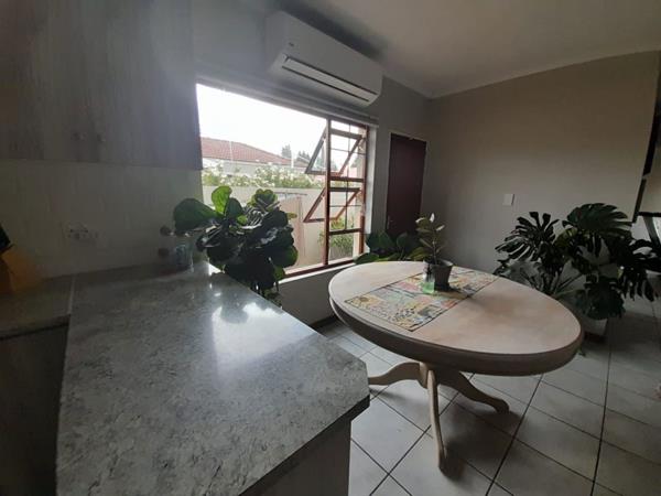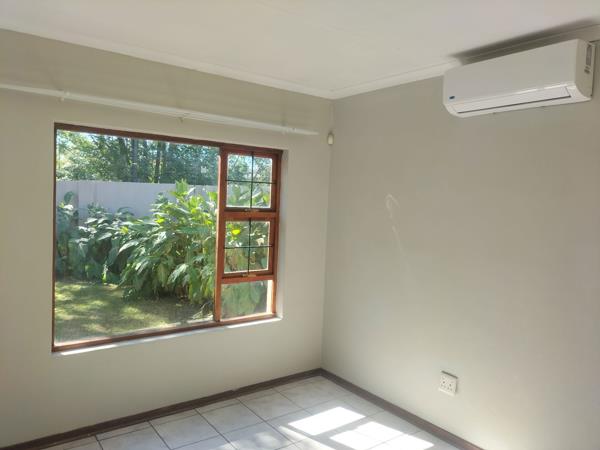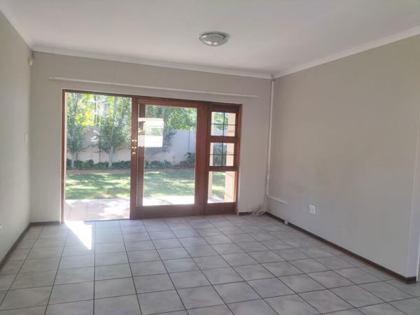 Sliding doors from the lounge open to a well-kept garden and patio with built-in braai perfect for entertaining