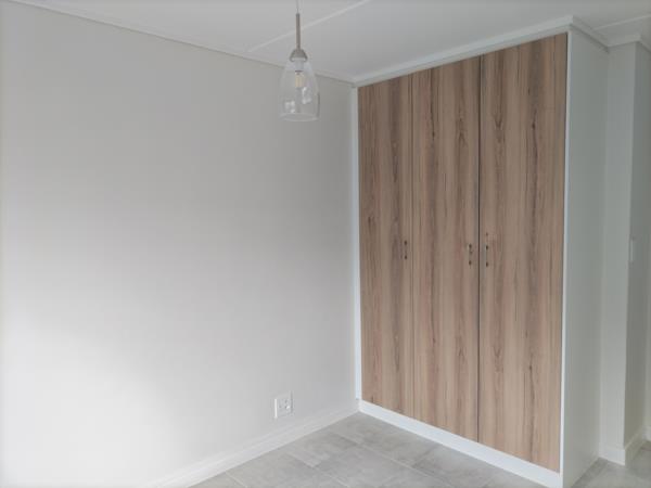This brand-new unit offers an open plan living area with a sliding door leading to its own courtyard where you can braai and relax in the pleasure of your own space and a kitchen with ample built in cupboards and a HOB. The apartment is spacious for newlyweds or a small family. Comfortable bedroom with built in cupboards, with a medium sized bathroom with a shower.