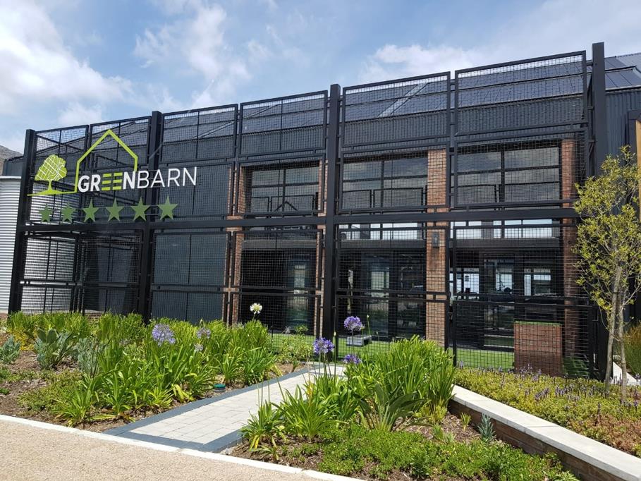 Discover modern living in this stylish 1-bedroom, 1-bathroom apartment located within the sought-after Green Bay Eco Estate in Gordons Bay, South Africa. This unfurnished unit offers a contemporary aesthetic, perfect for individuals or couples seeking a lock-up-and-go lifestyle. The building itself boasts an industrial-chic design with distinctive black metal framing and exposed brick accents, setting a sophisticated tone.
