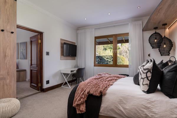 Inside, the residence impresses with four wood-burning fireplaces, air-conditioning throughout, and smart TVs in all bedrooms and living areas. The primary pool courtyard offers complete privacy and includes a jacuzzi, outdoor braai, tranquil pond, and generous dining area, creating a perfect setting for relaxed outdoor living.