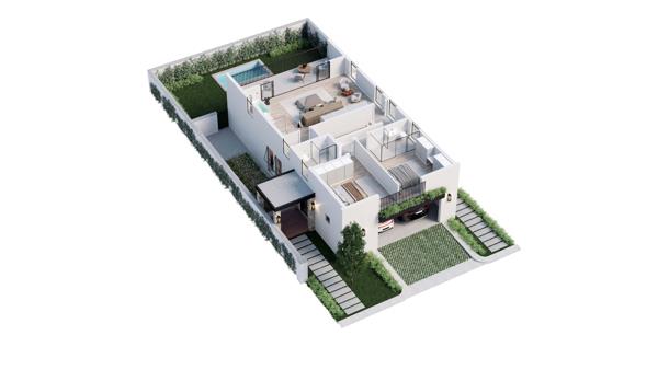 This stylish residence features spacious, open-plan living with premium finishes and a seamless indoor-outdoor flow. The ground floor features a designer kitchen with Smeg appliances, flowing into the dining and lounge areas, plus a separate entertainment room with built-in braaiperfect for relaxed evenings or hosting guests. Stack doors open to a private garden with a splash pool, ideal for summer days.