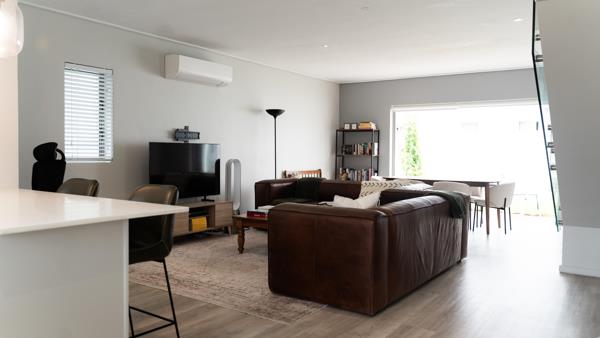 and dining area, creating a comfortable space for everyday family life and entertaining. Stacking doors open to a private garden, perfect for relaxed outdoor living.