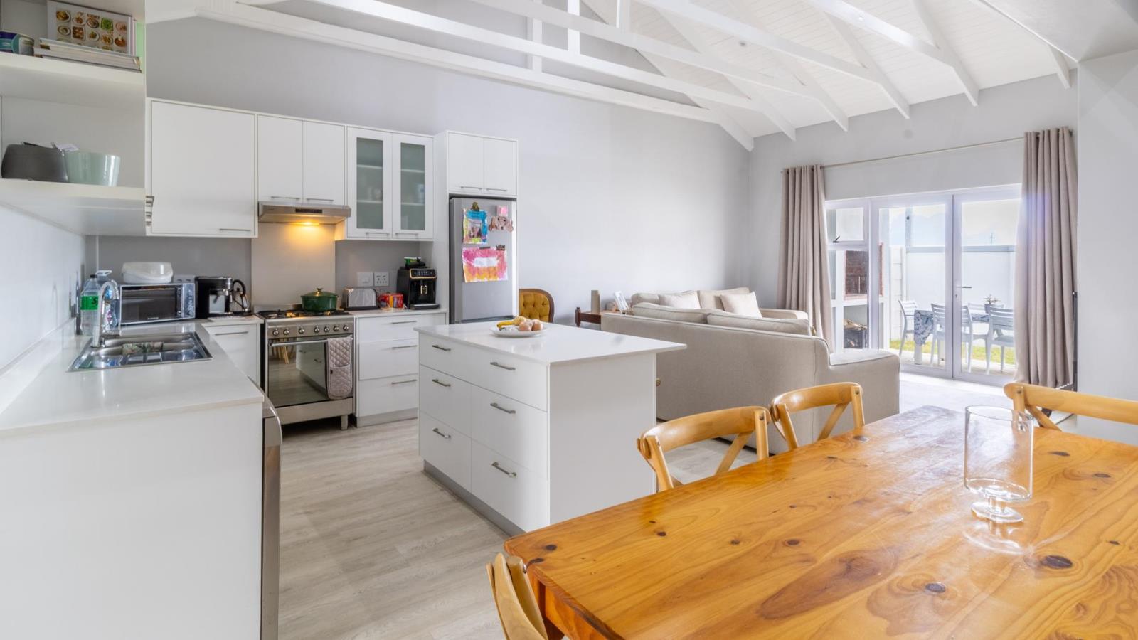 This 2-bedroom home offers a spacious open plan kitchen and living area that flows seamlessly to the enclosed back garden with covered braai area.
