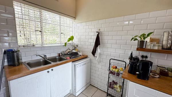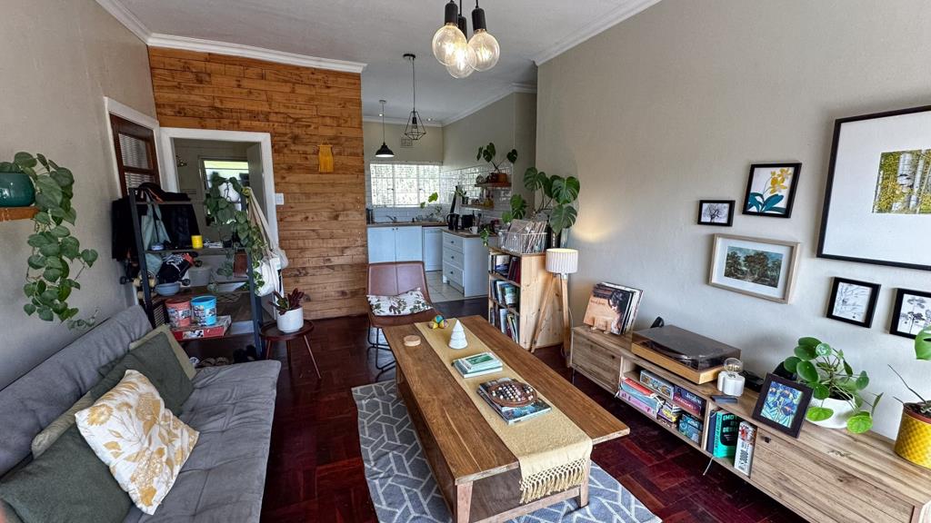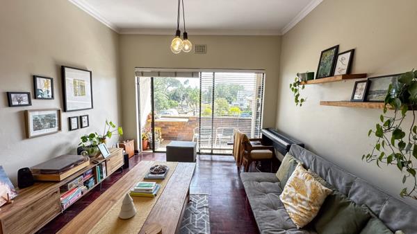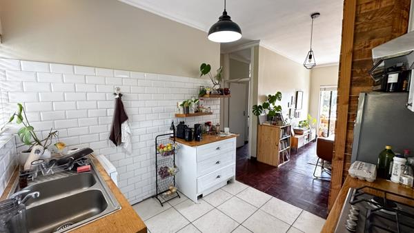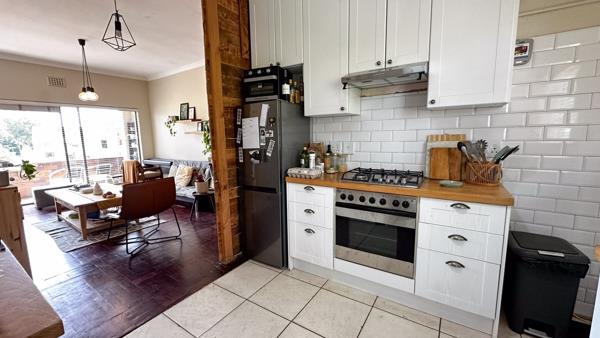 Open plan kitchen and lounge. Sliding door from lounge opening onto sunny balcony. Kitchen with gas hob, electric oven, space for dishwasher and washing machine.