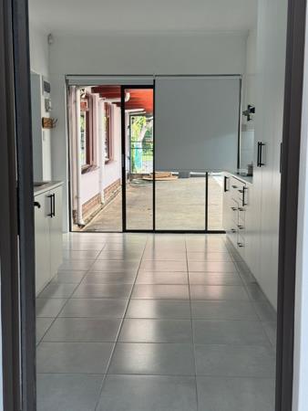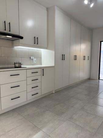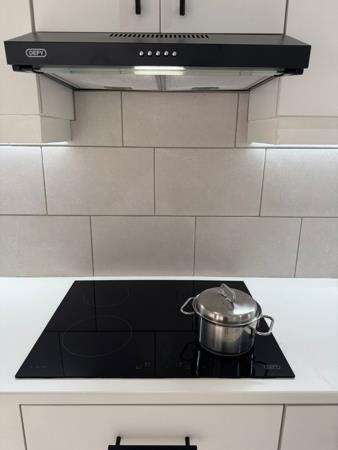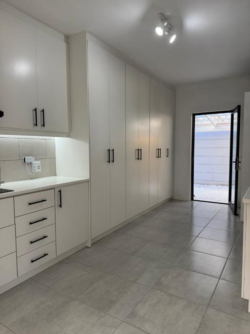 Modern kitchen, with ample cupboard space, induction cooktop and washing machine connection. Kitchen walks out into small private courtyard, with washing line. Spacious bedroom with en-suite shower.