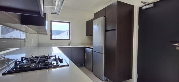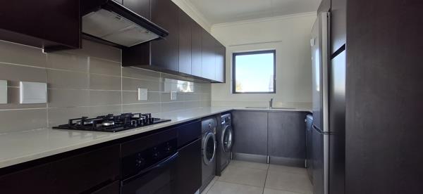 The open-plan design of the kitchen and lounge creates a seamless flow that extends to a spacious balcony, perfect for relaxing or entertaining. The modern kitchen is fully equipped with all necessary appliances and offers ample cupboard space for storage.