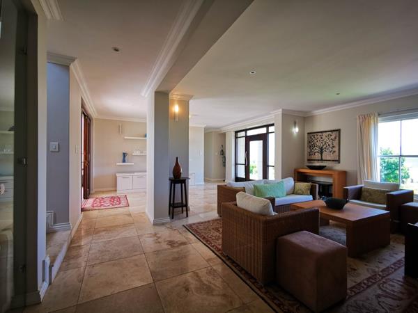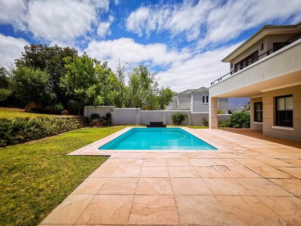 This stunning home situated at the top of the Estate commands 360-degree views across the Helderberg Basin and the Hottentots Holland mountain range. The indigenous garden blends in beautifully with the bordering Nature Reserve, making it seem as if you have your own private mountain.