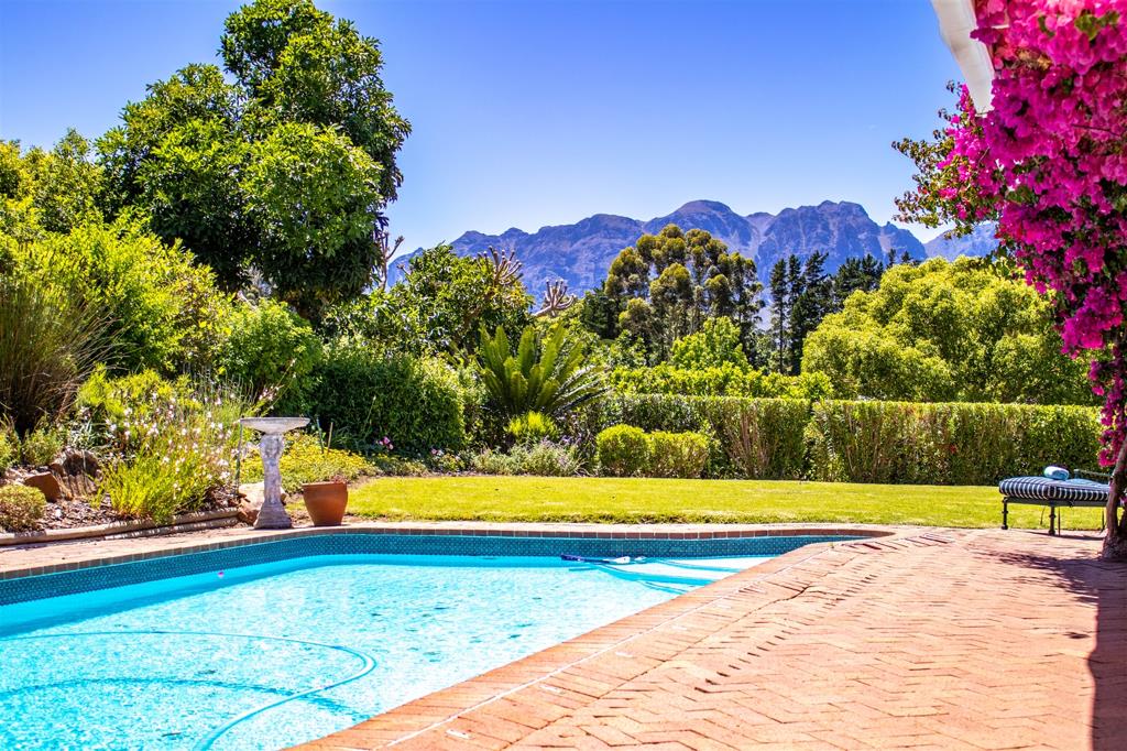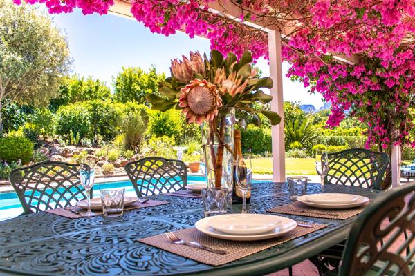 Located close to the Erinvale Clubhouse, Bougain Villa is the perfect name for this beautiful home. Relax on the terrace underneath the shade of the Bougainvillea flowers after a dip in the pool and take in the magnificent views of the mountains in the distance.