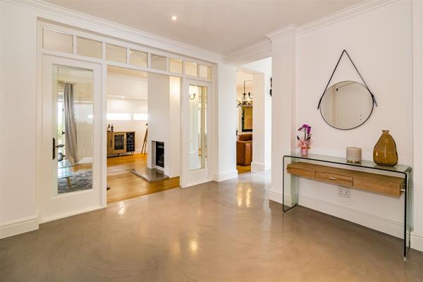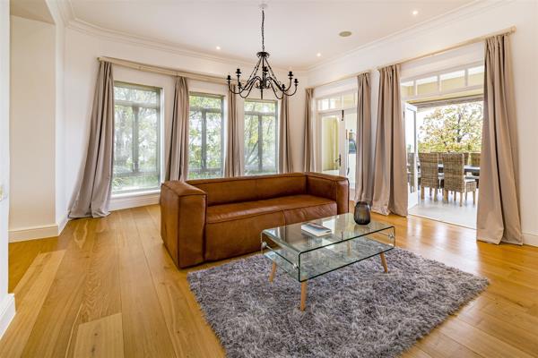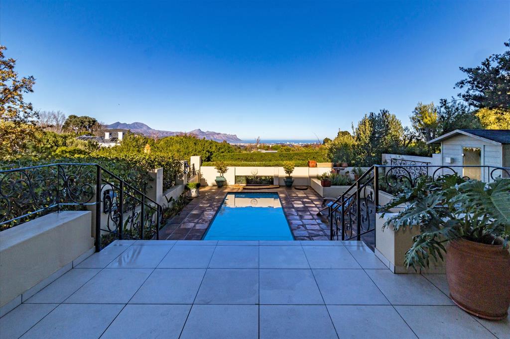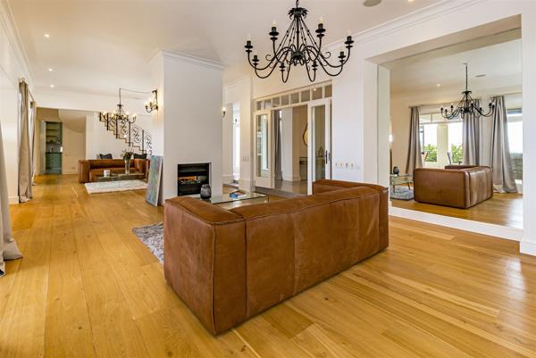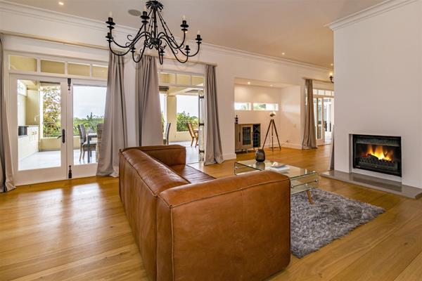 Careful thought has gone into the clever architecture to ensure that there is an open-plan feel with excellent flow for entertaining including two lounges, TV lounge and formal dining area. There is a large covered patio with plenty of seating, pizza oven and braai. The panoramic views of the mountains and sea make it the perfect setting to enjoy sundowners on a summer evening.