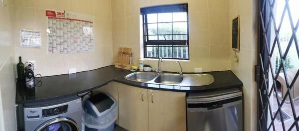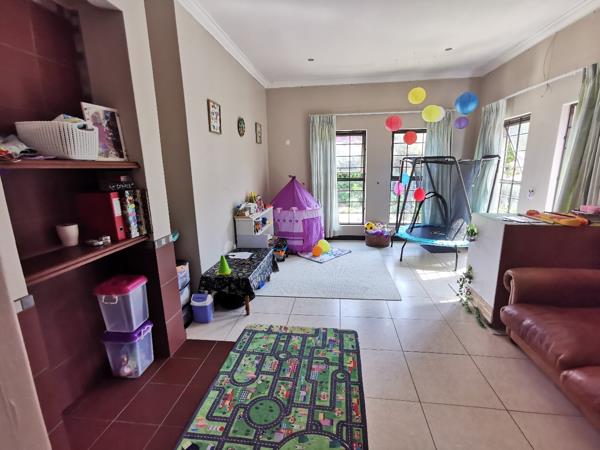 A Bright open-plan living area complimented by a separate TV room and spacious lounge with ample room for both relaxation and entertainment. The lounge is spacious to enjoy family dinners. Walk out of the sliding doors in the living room, relax on the stoop area with a shaded net to cover the hot sun. With a beautiful garden, ideal for outdoor enjoyment.