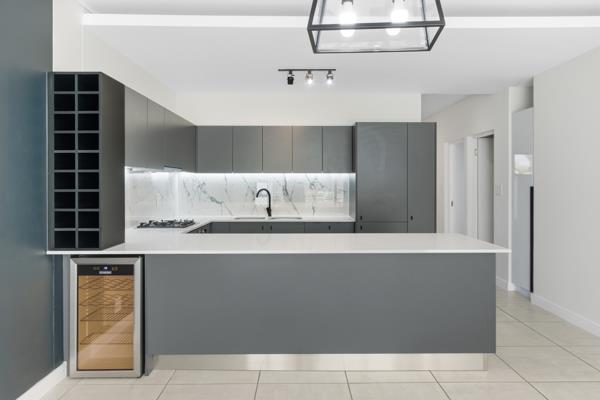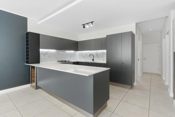 The Smeg fridge, washing machine and dishwasher are integrated into the kitchen cabinets. The dining area can accommodate a large dining room table. The lounge leads via sliding doors out a private patio which includes a louvre awning. The garden is spacious and private. The master bedroom enjoys access to the garden and includes a full en-suite bathroom. The second and third bedrooms are serviced by a shared bathroom with a large shower and toilet. The bedrooms are fitted with built-in cupboards. The apartment is tiled throughout.