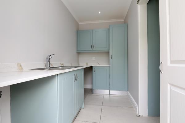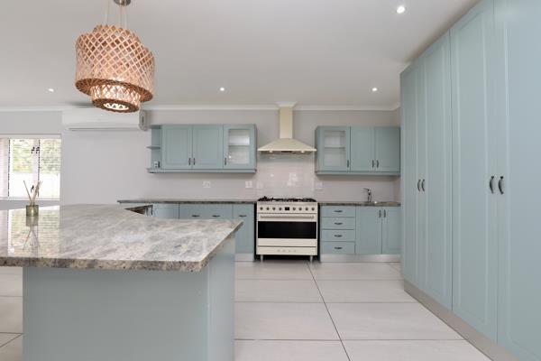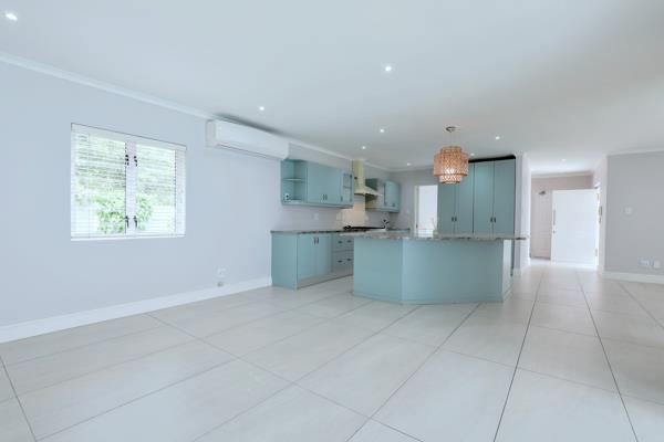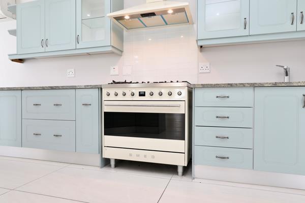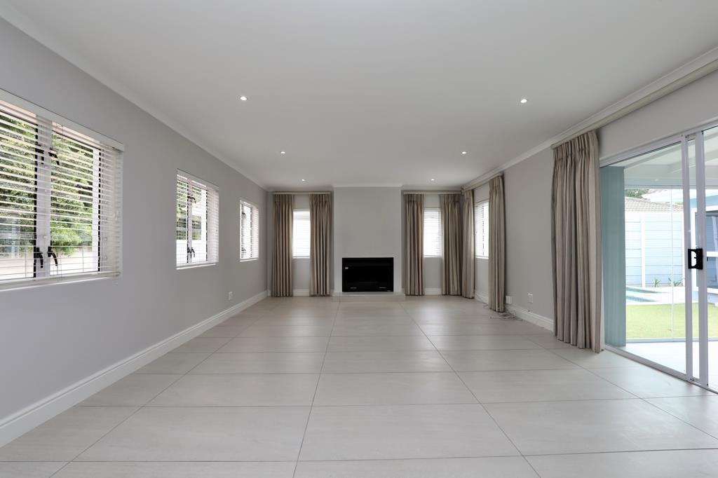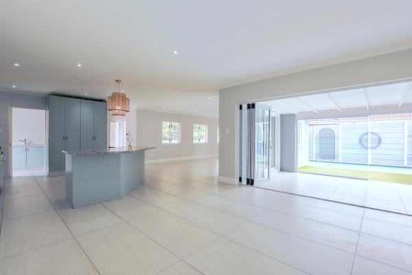 Enjoy the easy flow of this sunny, open-plan lounge with cosy fireplace and dining area with centrally placed kitchen with SMEG 5 plate gas hob and elec oven leading seamlessly via stack-back and sliding doors into the enclosed entertainment braai room which in turn opens out via frameless stack-back doors to the low-maintenance garden and sparkling swimming pool ideal for relaxed living and entertaining.