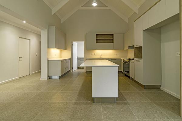 The heart of the home features open-plan living areas beneath striking high ceilings, creating a sense of space and light. A premium 5-burner Smeg gas hob with electric oven anchors the kitchen, which flows seamlessly into a separate scullery ideal for keeping your main living space clutter-free.