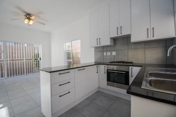 Welcome to this bright and contemporary duplex located in a secure, gated estate in the sought-after Somerset Ridge area. This home offers modern finishes and thoughtful design throughout. The ground floor features an inviting open-plan living and dining area that flows seamlessly to a private patio and enclosed paved garden perfect for entertaining or relaxing. The stylish kitchen is fitted with granite countertops, an electric oven and gas hob, plumbing for a dishwasher, and space for a single-door fridge. Ample built-in cupboards provide excellent storage. Upstairs, youll find three beautifully finished bedrooms, all with built-in cupboards. The main bedroom includes a modern en-suite bathroom, while the other two bedrooms share a full family bathroom.