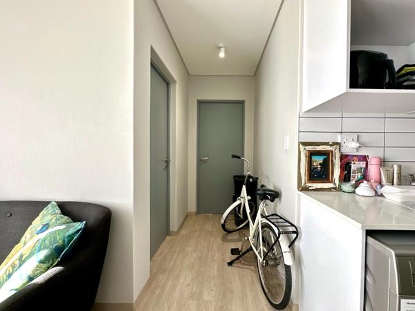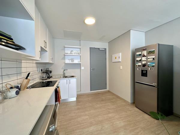 Discover this cozy 42sqm, 1-bedroom apartment on the first floor. It boasts an open plan kitchen with ample cupboard space, a comfortable diningliving area leading to a balcony, and a spacious bathroom with a shower. The apartment offers secure parking, prepaid water and electricity meters, and is fibre-ready. It features laminate flooring throughout.