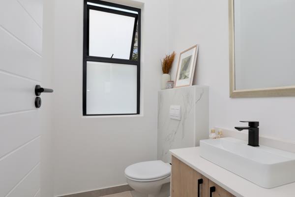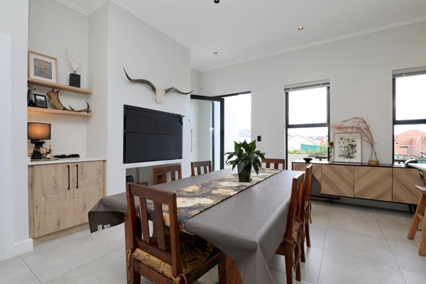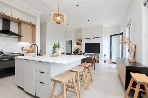 This home offers an Open-Plan Lounge, Dining, and Braai area, three bedrooms all with ensuite bathrooms, a guest toilet, and a study corner.