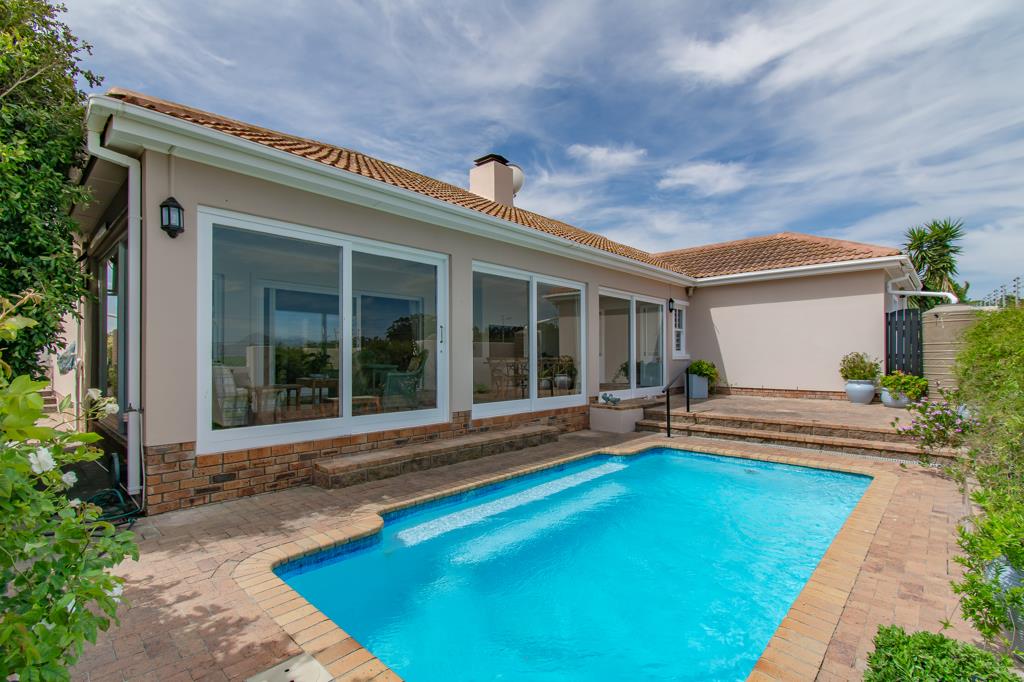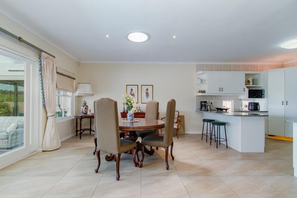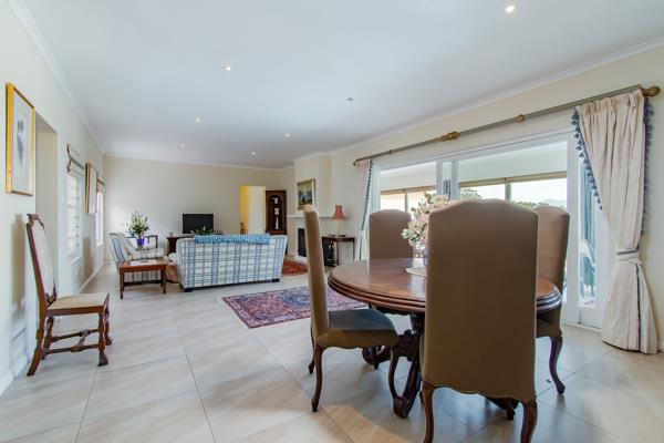 - Living Area: Spacious and airy open-plan easy flow living & dining area, perfect for seamless entertaining and family life. -The dining area opens onto an enclosed entertainment area , with built in braai , an aircon and sliding doors opening onto the lovely pool offering stunning views of the the vineyards and mountains.
