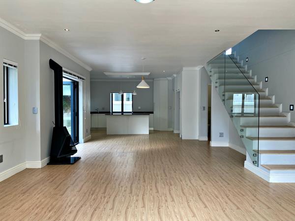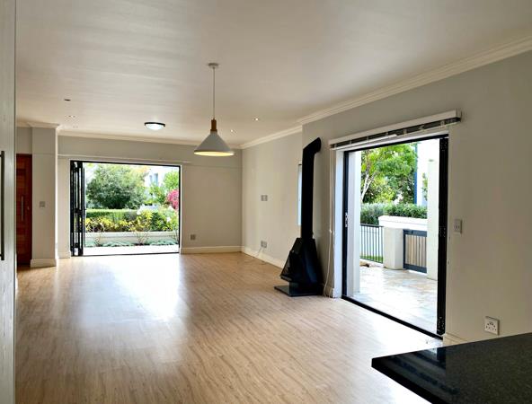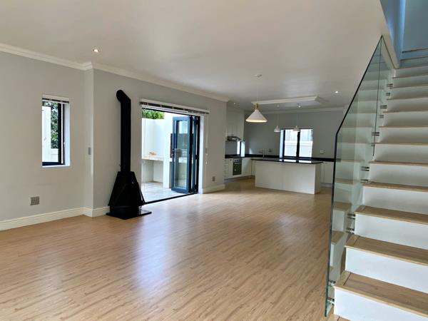 The living space is open plan with a lovely kitchen and scullery. Stacking doors lead to the Patio and also the braai area..