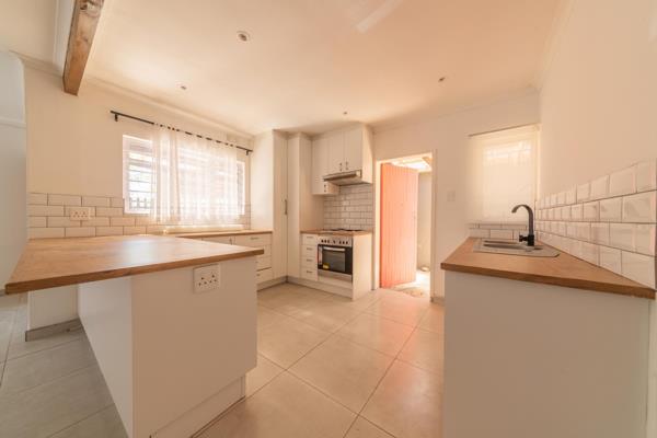 Discover this inviting 2-bedroom, 1-bathroom rental property located in Cloetesville, Stellenbosch. The residence features a bright and spacious open-plan living area seamlessly connected to a modern kitchen. The kitchen is well-appointed with contemporary white cabinetry, warm wood-look countertops, and a stylish subway tile backsplash. It includes an integrated oven, hob, and a range hood, complemented by a practical breakfast bar. Throughout the home, durable tiled flooring ensures easy maintenance, while recessed lighting enhances the modern aesthetic. A unique coral-colored door adds a distinctive touch to the interior.