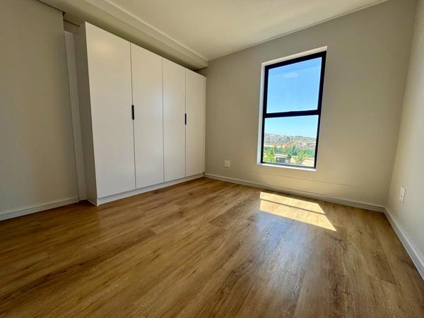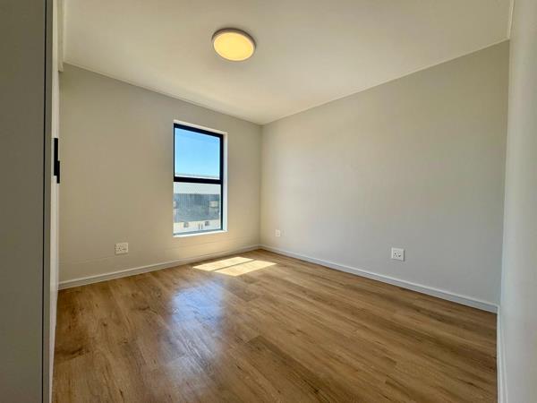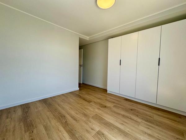 This modern 2-bedroom, 2-bathroom apartment offers a contemporary living experience in the sought-after Cloetesville area. The open-plan living space is designed for comfort and functionality, featuring sleek wood-look laminate flooring and abundant natural light. The integrated kitchen boasts modern white cabinetry, a new built-in oven, and a gas hob, complemented by under-cabinet lighting and a tiled backsplash. A large glass sliding door seamlessly connects the living area to a private, tiled balcony, perfect for enjoying the fresh air.