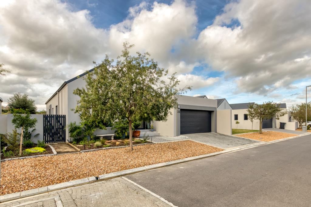 Nestled in the sought-after Aan de Wijnlanden Estate, this 4-bedroom residence offers generous space for modern family living. The home is designed for comfortable everyday living and memorable hosting, with two distinct living areas, a dedicated dining space, and year-round entertaining options thanks to an indoor braai area and a cozy lounge fireplace. The property sits on a sizable plot within a high-security estate that features scenic fynbos trails and a strong sense of community.