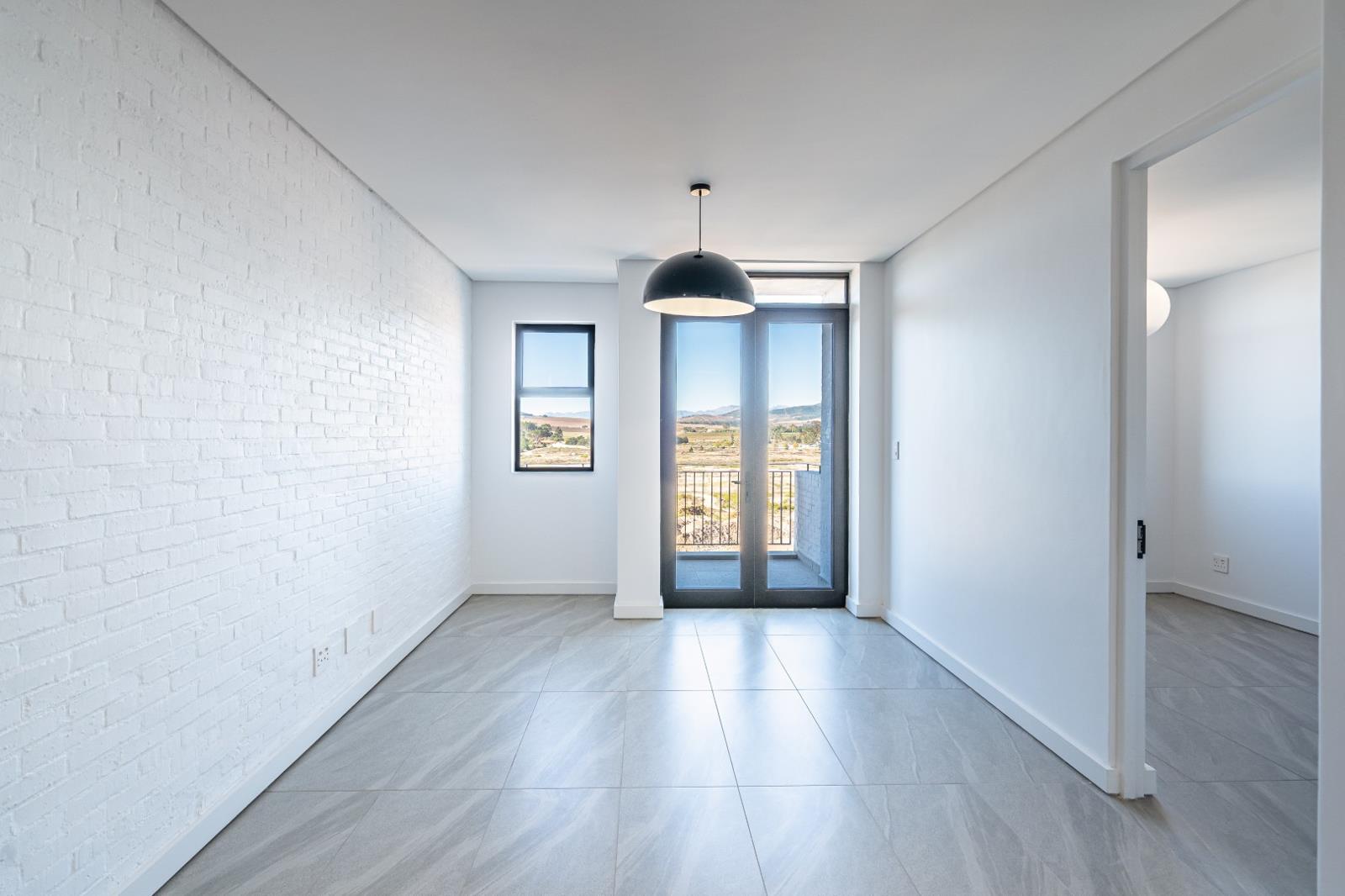 Modern one-bedroom apartment situated in Devonbosch, Stellenbosch - a world-class development located in the picturesque Cape Winelands. This eco-friendly unit has been meticulously designed, incorporating intelligent living technologies and modern interiors. The open plan living, dining and kitchen area opens out onto a covered balcony with elevated views.