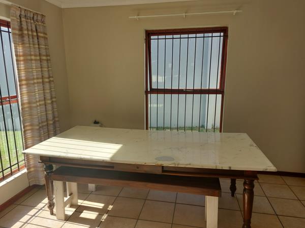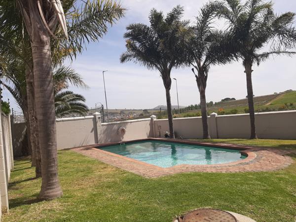 This townhouse has spacious living areas and share communal green gardens and a swimming pool.