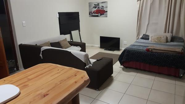 large spacious one bed bachelor apartment is on the ground floor in a safe complex in central Stellenbosch near the Campus.