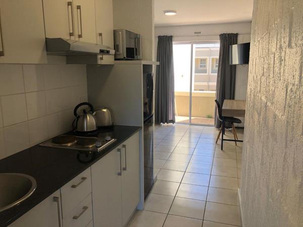 This semi-furnished bachelor unit with one en-suite bathroom apartment in La Colline, Stellenbosch is perfect for a student or young professional looking for a private space to rent. The unit is fully tiled and has modern finishes.