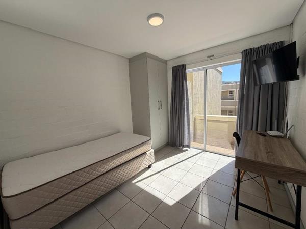 This semi-furnished bachelor unit with one en-suite bathroom apartment in La Colline, Stellenbosch is perfect for a student or young professional looking for a private space to rent. The unit is fully tiled and has modern finishes.