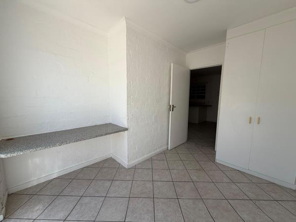 This unfurnished two-bedroom one bathroom apartment in La Colline, Stellenbosch is perfect for a student or young professional looking for a private space to rent. The unit is fully tiled and has built-in cupboards throughout the unit.