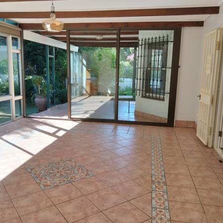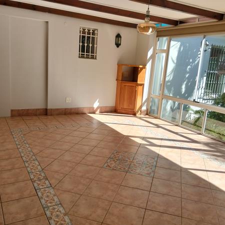 The living and dining areas offer a welcoming space for everyday living, while the enclosed braai room is a standout feature. With doors and windows that open onto the riverside garden, it creates a seamless indoor-outdoor flowideal for entertaining in all seasons.