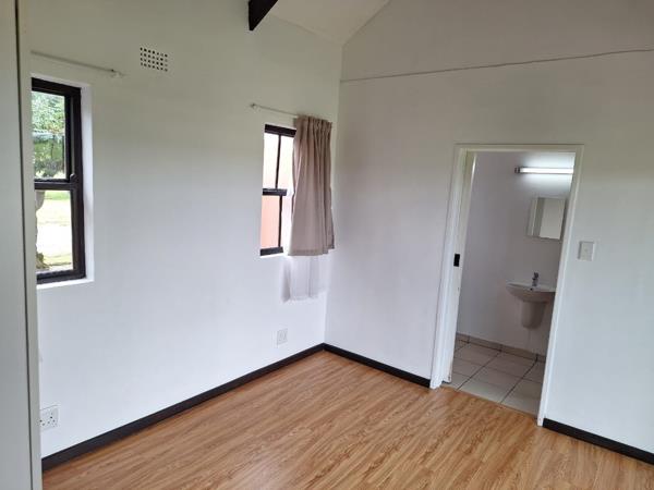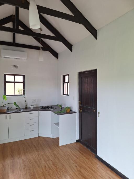 This lovely cottage consists of 1 spacious bedroom with built in cupboards with a en-suite bathroom. Big open plan lounge and kitchen fitted with ample built in cupboards, a gas hob, aircon and fireplace. The lounge has sliding doors leading to a private covered patio with a built in braai. The patio area / back garden borders on a wildlife farm so you have the most amazing views. A must to see. Available for occupation from the 1st of December 2025 / 1st of January 2026.