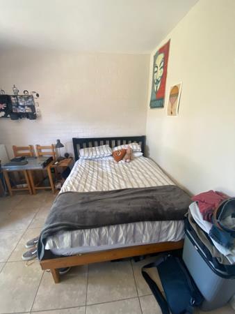 One room available to share for a female in a two-bedroom townhouse available in Zimbabwe security complex. This unit is semi furnished and comes with all the silver appliances as per the photos. Two tiled bedrooms both with built in cupboards. One full modern bathroom with a shower, bath, basin & toilet. Open plan tiled kitchen and lounge. The kitchen is equipped with ample built in cupboards, a breakfast nook, granite tops, an electric hob, oven, extractor fan and a washing machine, fridge & microwave. The property has a private courtyard and private patio with garden.