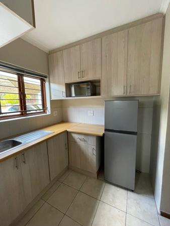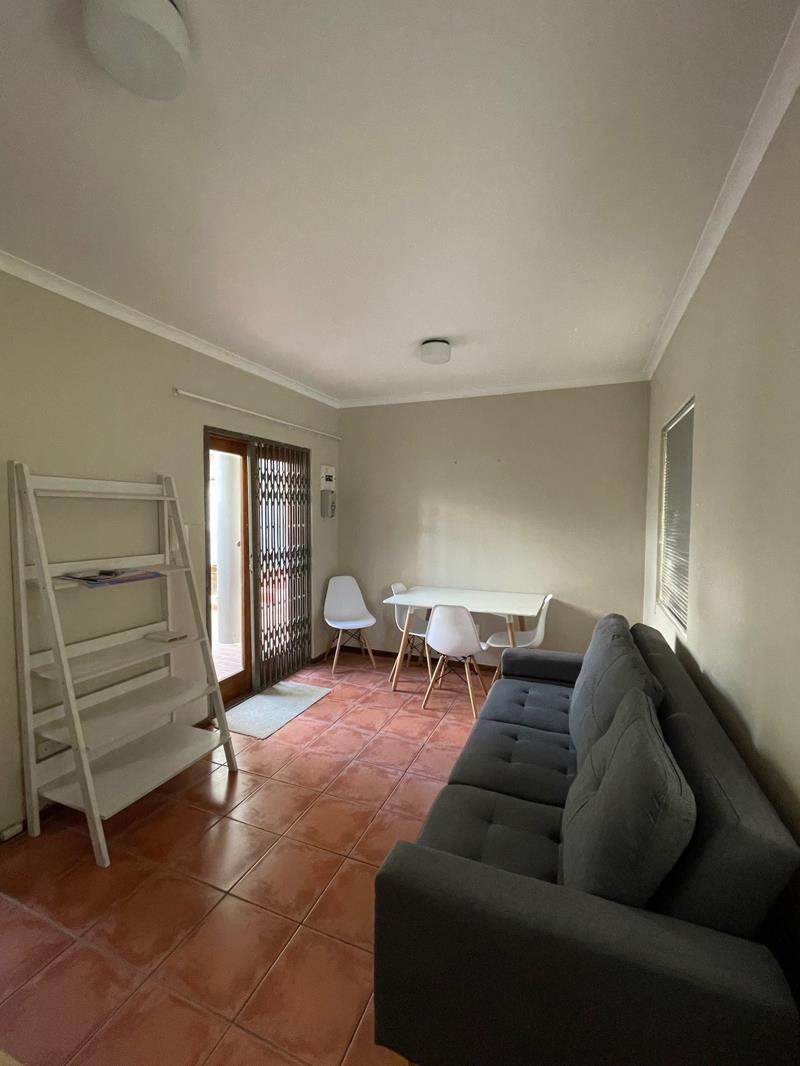 Bring personal belongings only! Refurbished unit fitted cupboards; with microwave; fridge/freezer; couch; loose carpet; dining table with chairs; bed only (no mattress); shelves and blinds & burglar proofing fitted in front of all windows. No stove/oven. Easy space for Airfyer / Snappy Chef plate. One shaded allocated parking inside gated complex & electric fencing. En-Route opposite c/o McDonald Street & Hofmeyr Str. Campus WiFi, prepaid electricity, water incl.