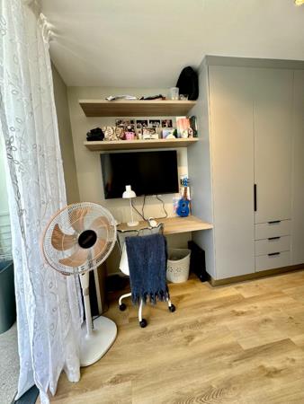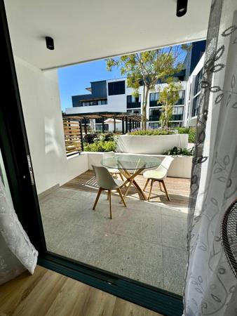 Presenting an exceptional opportunity for sophisticated urban living, this contemporary studio apartment is situated within ''THE ONE'', a distinguished modern development in the heart of Stellenbosch Central. Designed with meticulous attention to detail, this compact yet highly functional residence spans 30.00 square metres, offering a singular bedroom, a well-appointed bathroom, and an integrated kitchen. The architectural aesthetic of the building, characterised by its clean lines and a striking white and dark grey facade, is mirrored within the unit, featuring modern finishes and an efficient layout. The interior boasts elegant laminate wood flooring throughout, complemented by integrated storage solutions and contemporary track lighting, creating an environment that is both stylish and practical.