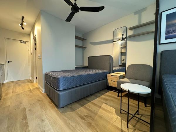 Discover modern student living in this well-appointed open plan 2-bedroom, 1-bathroom rental unit located in vibrant Stellenbosch Central. Spanning 30 square meters, this contemporary space is designed for efficiency and comfort. The building, ''THE ONE'', presents a stylish facade with modern architecture, featuring clean lines and a welcoming glass-fronted entrance, setting the tone for sophisticated urban living.