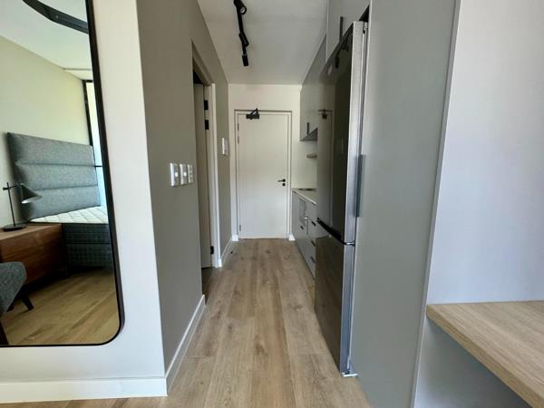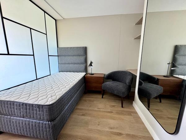 Discover modern student living in this well-appointed open plan 2-bedroom, 1-bathroom rental unit located in vibrant Stellenbosch Central. This contemporary space is designed for efficiency and comfort. The building, ''THE ONE'', presents a stylish facade with modern architecture, featuring clean lines and a welcoming glass-fronted entrance, setting the tone for sophisticated urban living.