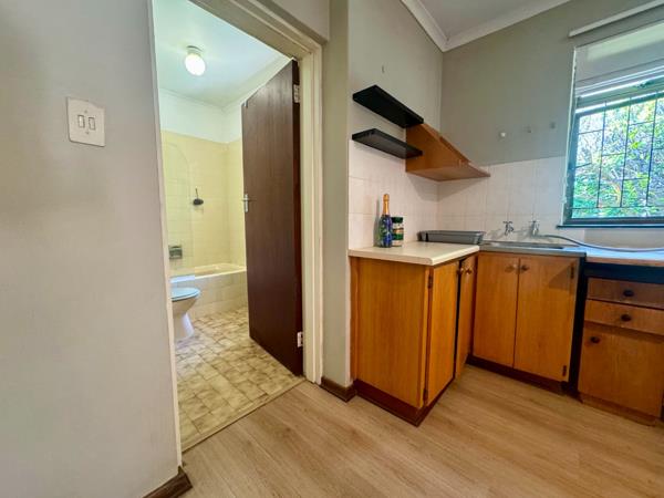 Discover a practical and well-located rental opportunity in the heart of Stellenbosch Central. This compact 35 sqm studio apartment is designed for convenient living, ideal for students or single professionals seeking a lock-up-and-go lifestyle. The unit features a functional open-plan layout with durable wood-look laminate flooring throughout, creating a cohesive and easy-to-maintain space. The living area is brightened by natural light from windows, and includes a basic kitchenette equipped with a sink, cabinetry for added convenience. Ample built-in storage, including a wooden wardrobe, ensures your belongings are neatly organised.