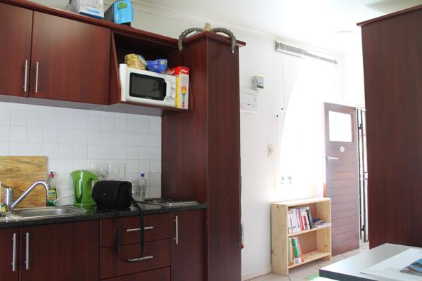 The apartment offers an open plan bedroom & kitchen area. The kitchen has loads of cupboard space. Place for a medium single fridge, place for a microwave, water point for a washing machine. BIC cupboards for the bedroom that are spacious. Big window to allow natural sunlight with blinds. Spacious bathroom with shower, toilet and hand basin. A communal braai is available for entertaining.