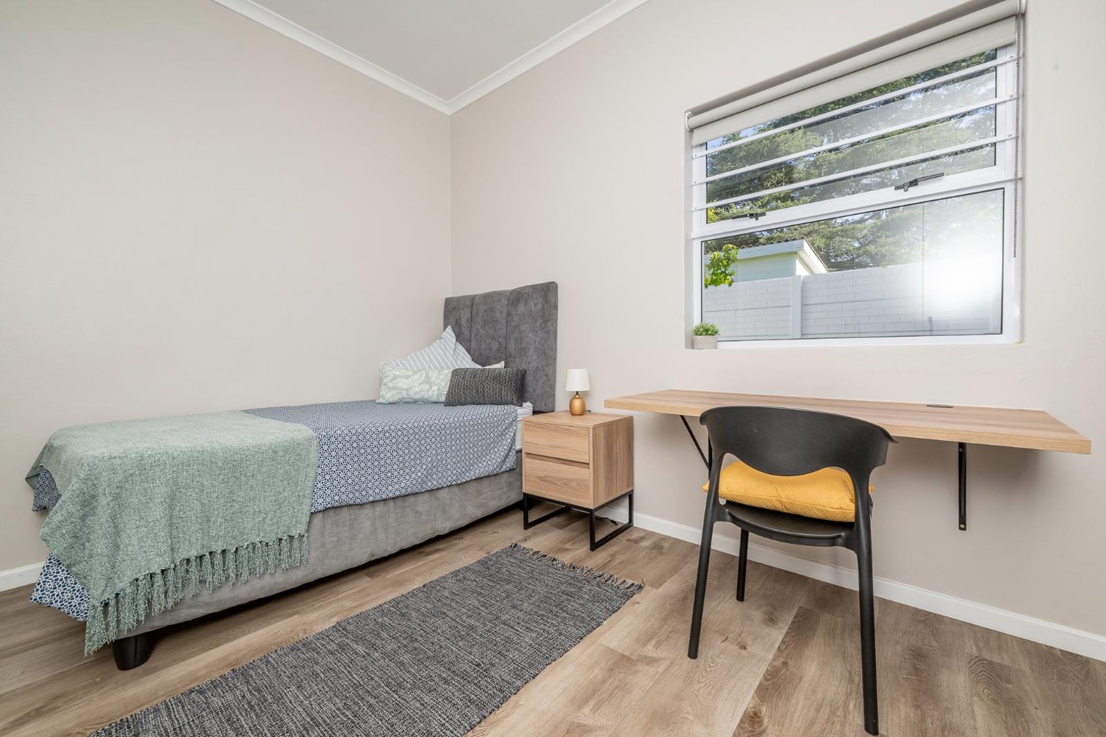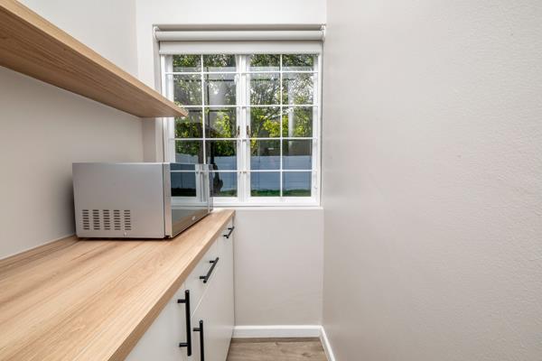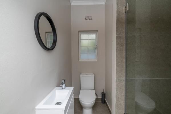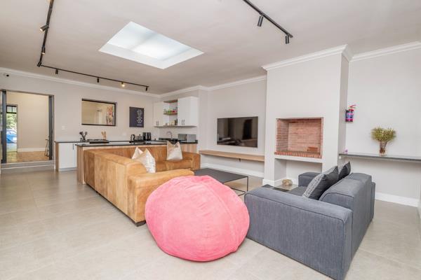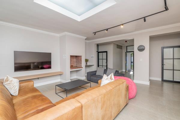 This exclusive residence has beautiful and comfortable communal areas, including a cozy indoor fireplace, a dedicated study nook, a dining space, and an outdoor boma for socializing. Included in the rent is high speed WiFi, water, a weekly cleaning service, one parking bay and a back-up system in the event of load shedding. Laundry facilities are available on-site.