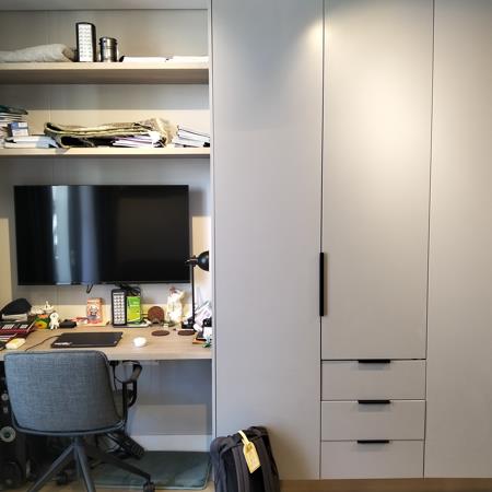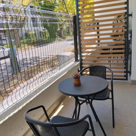 Modern ground floor bachelor apartment located in the ever-popular The One, Stellenbosch. This stylish unit is semi-furnished, including a bed, tv, couch, desk, chair, and patio table with chairs. The apartment features a private bathroom and a built-in desk, offering a comfortable and convenient living space.