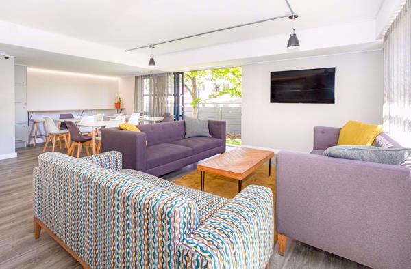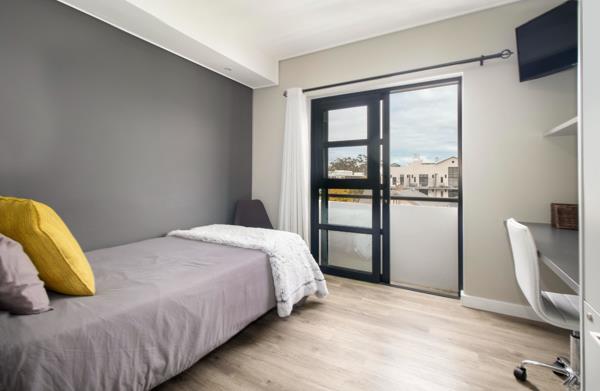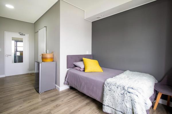 Studio apartment on campus 17 On Cluver. Perfectly located within walking distance of multiple educational institutions, this semi-furnished studio apartment offers convenience and comfort. The unit includes a bed with headboard, a 32-inch flat-screen Smart TV, and a compact kitchenette equipped with a bar fridge and microwave oven. The bathroom features a shower, basin, and toilet. One allocated parking bay is included.