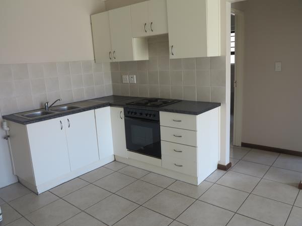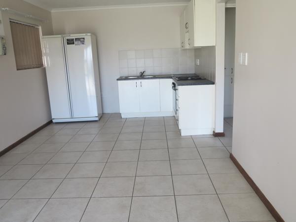 Neat and well-maintained one-bedroom ground floor apartment offering comfortable, convenient living. The apartment features an open-plan kitchen with built-in cupboards, oven and hob, flowing into a lounge area. One bedroom with built-in cupboards and a bathroom with shower, basin and toilet.