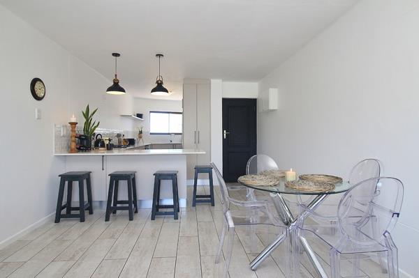 AVAILABLE FROM 7 APRIL TO 31 OCTOBER This modern 78 sqm apartment offers a sophisticated beachfront lifestyle in Strand North. Featuring two bedrooms and one bathroom, the residence boasts an open-plan layout that seamlessly integrates the living, dining, and kitchen areas. The contemporary kitchen is a highlight with a stylish subway tile backsplash, a breakfast bar with pendant lighting, and appliances including a gas hob, electric oven and washing machine. The apartment is offered fully furnished.