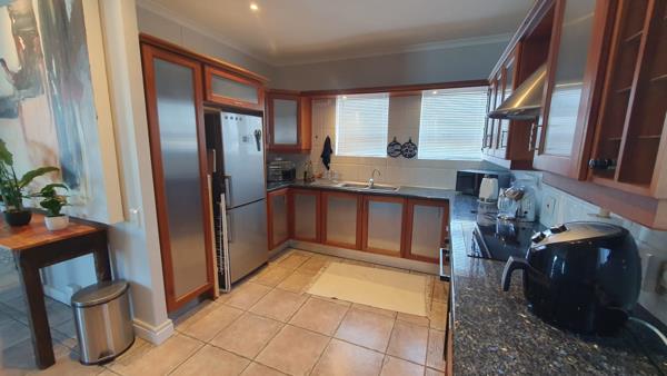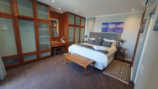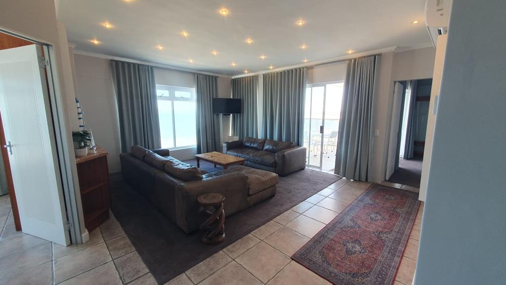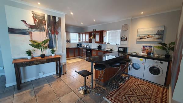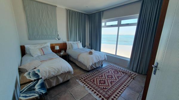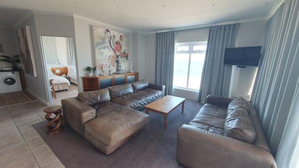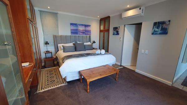 The lounge is an ideal spot to unwind, also air-conditioned, with a TV and WiFi already set up for your enjoyment or productivity. But the true heart of this home is the covered balcony, its spacious, private, and with a built-in braai, its made for easy weekends, sunset dinners, or simply watching the waves roll in.
