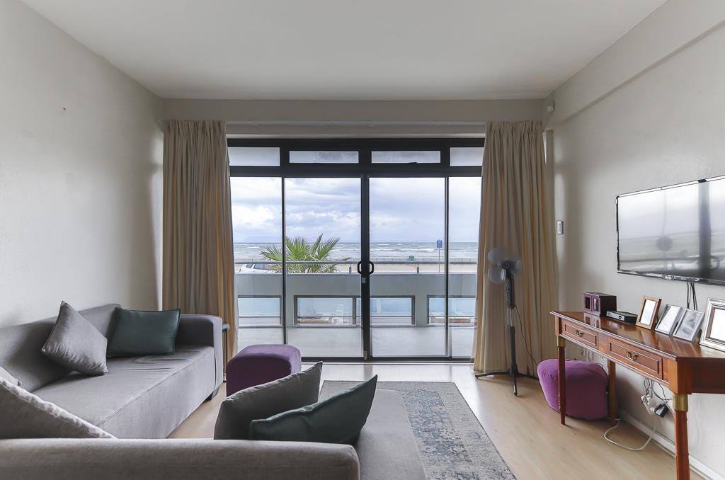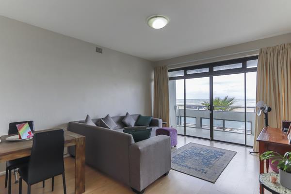 It features two bedrooms with ample natural light, and plenty of cupboard space. A spacious lounge opening onto a balcony with full ocean views. There is one bathroom plus an additional toilet, for added convenience. The large kitchen with a loose-standing stove and plenty of workspace and cupboards. This unit comes with two secure parkings.