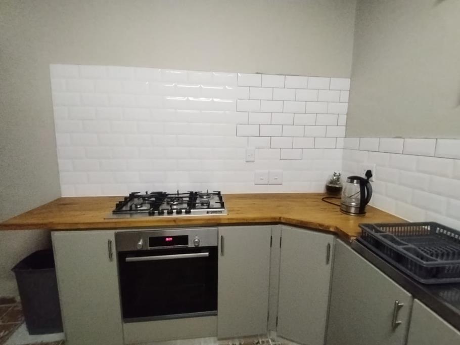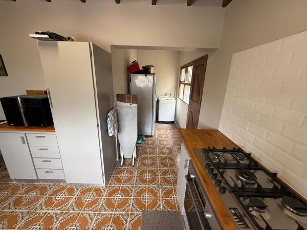 Farm size kitchen also newly renovated with room for a kitchen table, lots of cupboards, electric stove with gas hob and 2 water connections.