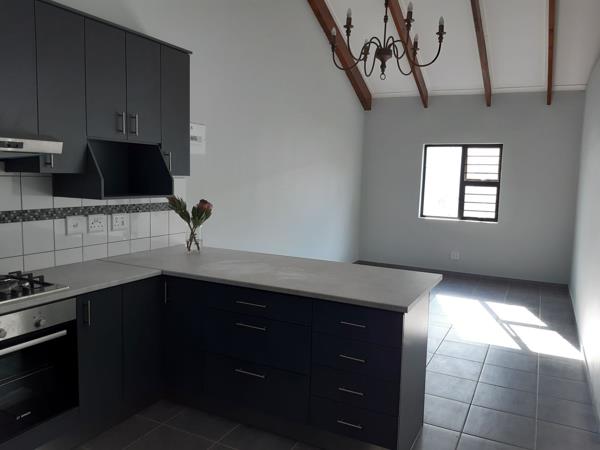 1 Bedr with BI cupboards & laminated floor. En-suite with space for washing machine & tumble dryer. Open plan living area and kitchen (ample cupboard space). 4 Plate gas stove with electric oven. Secure under parking with automated entrance gate. Flat adjust to main house. Electricity for tenant. Ideal for single female person (non-smokers please). Regrettable NO pets. Wi-fi & Garden service included. Available as soon as possible.