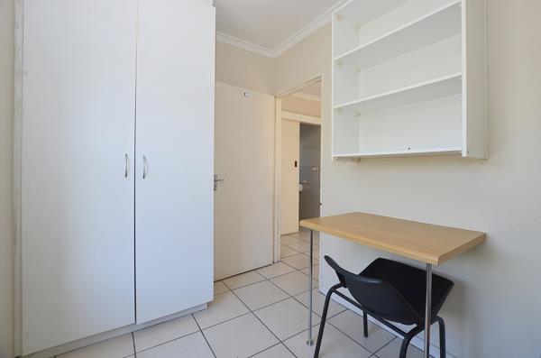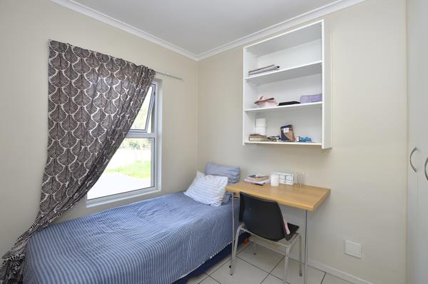 Each bedroom has a single bed, desk, book shelve and build in cupboards
